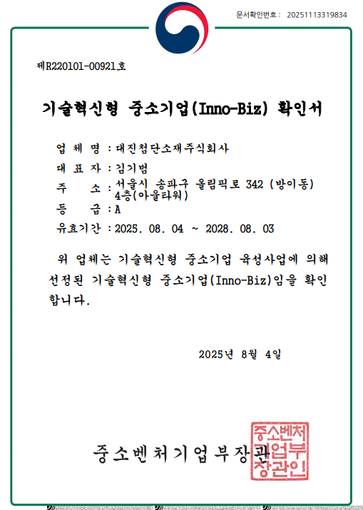 Copyrightⓒ 대진첨단소재㈜ all rights reserved.
